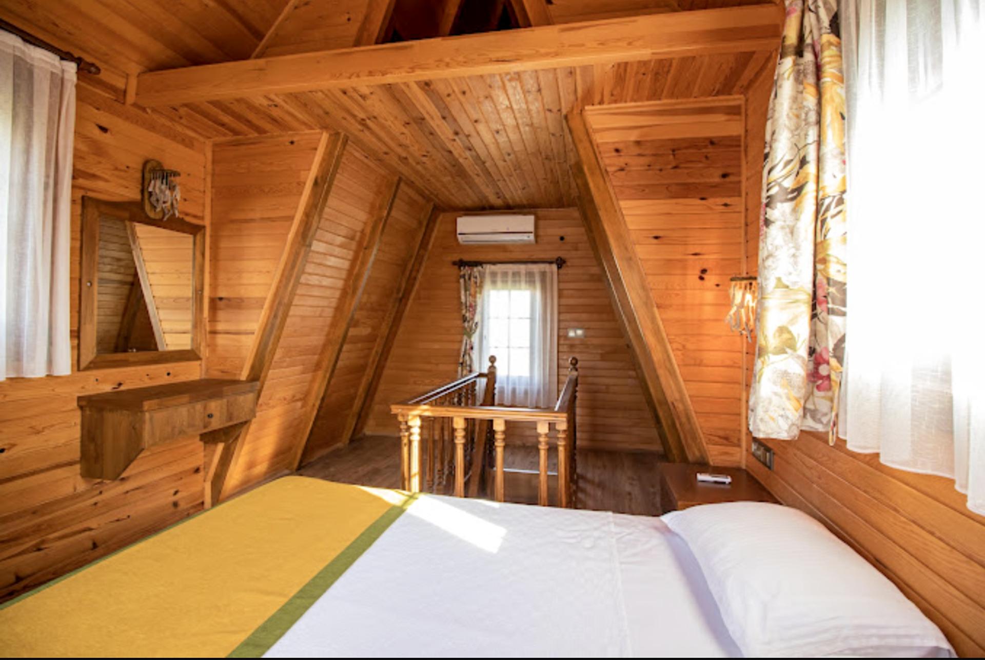Üst katta 1 adet çift kişilik yatağı ve alt katta açılabilir 2 kişilik kanepesi olan dublex bungalovumuzda talebe göre 1 adet daha ekstra taşınabilir tek kişilik yatak atılarak maksimum 5 kişi konaklayabilir.