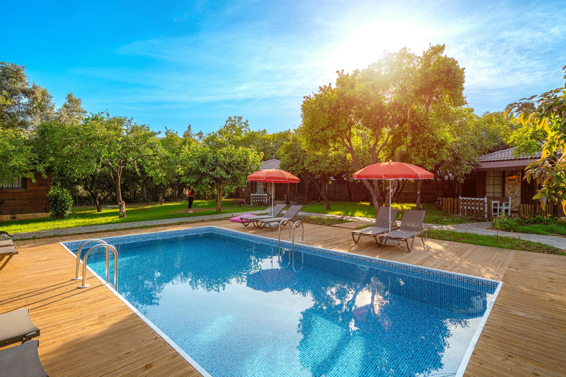 Mandalina yaprakları arasından süzülen güneşin yumuşak ışıltısıyla, ağaçların altında havuzun keyfini çıkarın. Gün boyu serinleyebilir, kitabınızı okuyabilir veya sadece dinlenebilirsiniz.